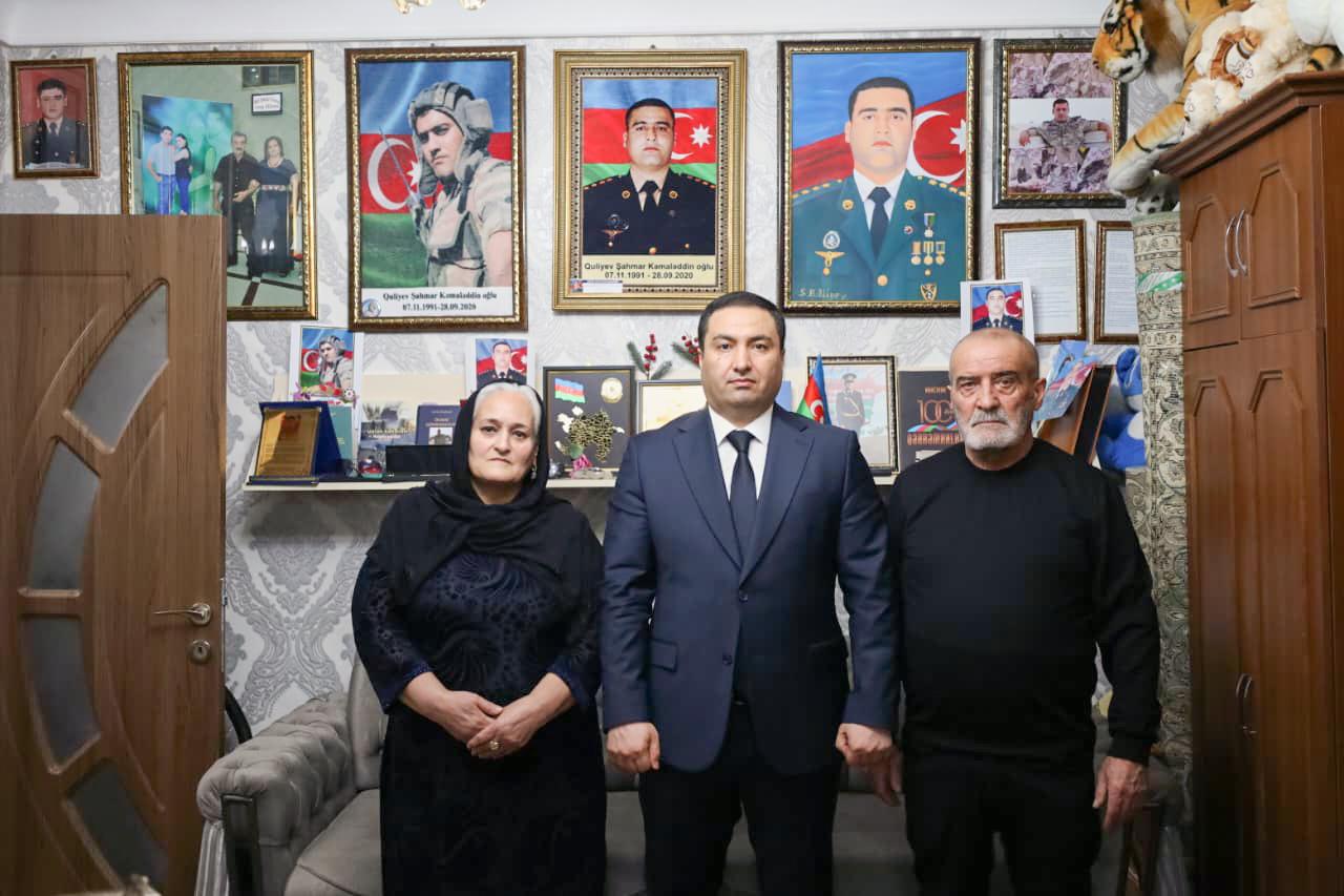 Naxçıvan Muxtar Respublikasının Əmək və Əhalinin Sosial Müdafiəsi Nazirliyinin tabeliyində Dövlət Sosial Müdafiə Fondunun İdarə Heyətinin sədri Elməddin Qəribov Naxçıvan şəhərində yaşayan, 2020-ci ildə Tərtər rayonu istiqamətində gedən döyüşlər zamanı şəhid olmuş kapitan Şahmar Quliyevin, Şuşa istiqamətində gedən döyüşlər zamanı şəhid olmuş Rüfət Gözəlovun və Xocavənd rayonunun Veysəlli kəndi istiqamətində gedən döyüşlər zamanı şəhidlik zirvəsinə yüksələn İslam Eyvazovun ailələrini ziyarət edib.