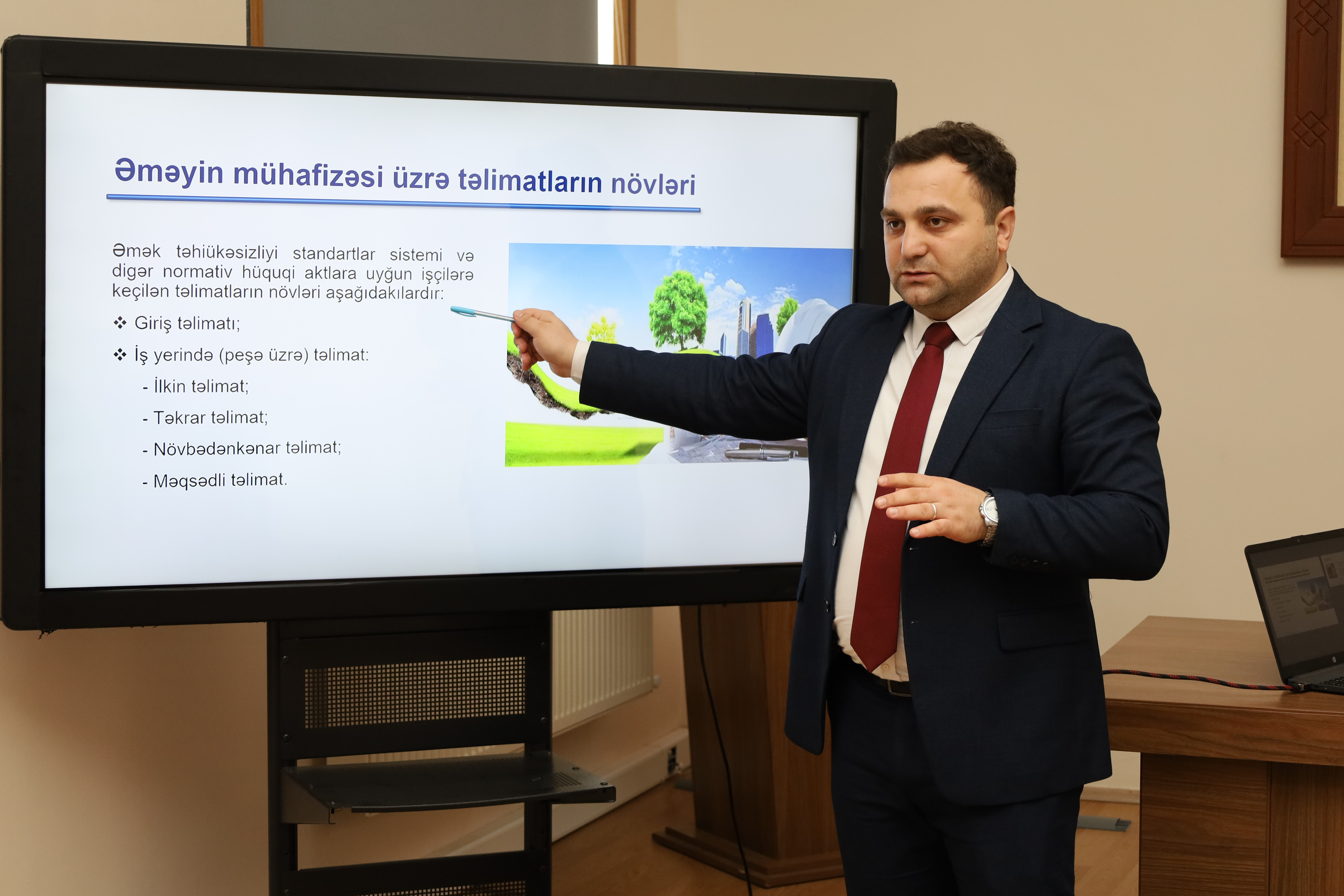Təlimlərdə işəgötürənlər tərəfindən işçilər üçün iş yerlərində sağlam və təhlükəsiz əmək şəraitinin yaradılması, əməyin mühafizəsinə dair qanunvericiliyin tələbləri izah olunub. Yanğın, elektrik təhlükəsizliyi və iş yerində mövcud ola biləcək digər təhlükə potensilları barədə, habelə istehsalatda baş vermiş bədbəxt hadisələr zamanı zərərçəkənə ilkin yardımın göstərilməsi üzrə təlimatlar izah edilib.