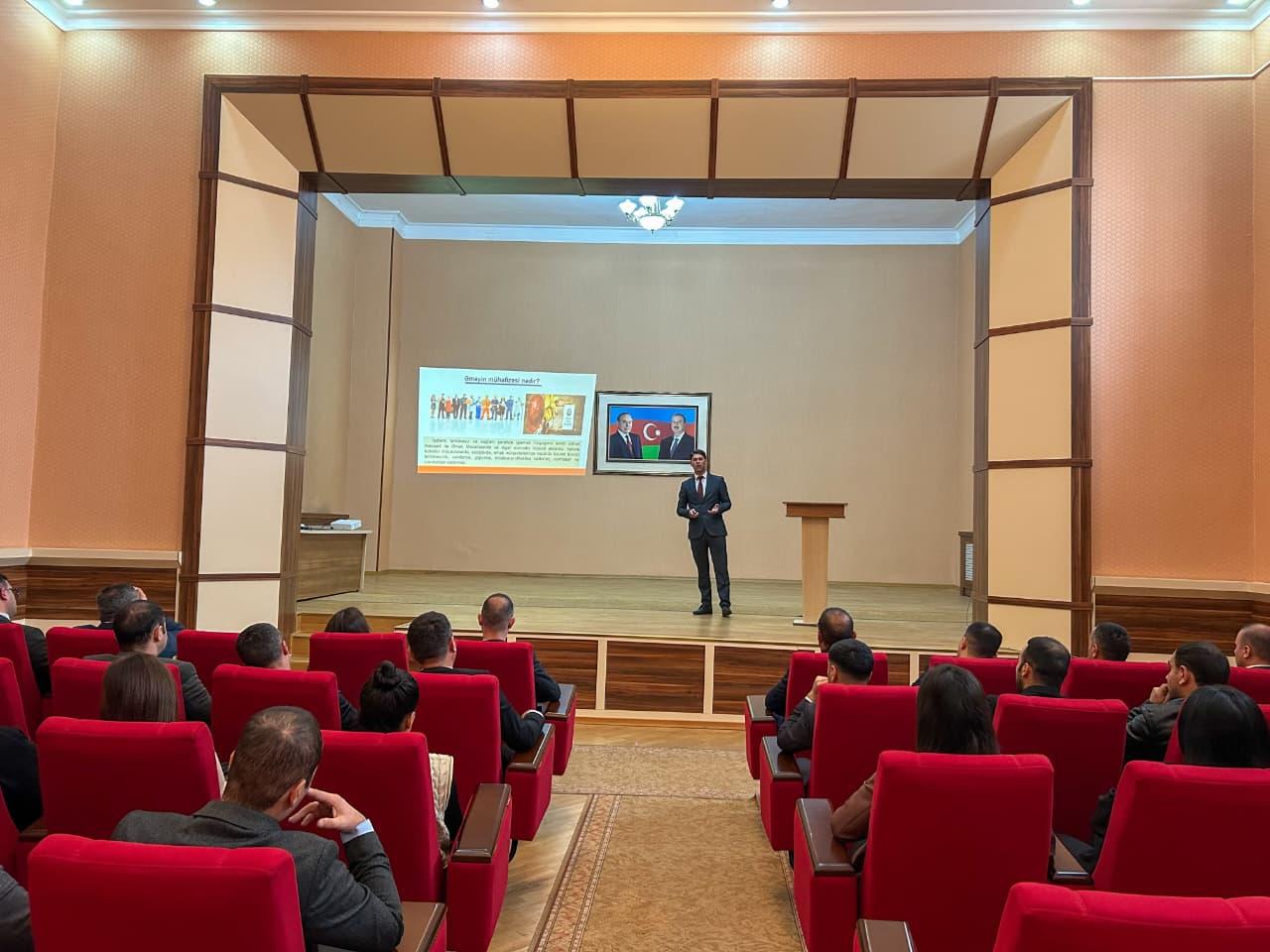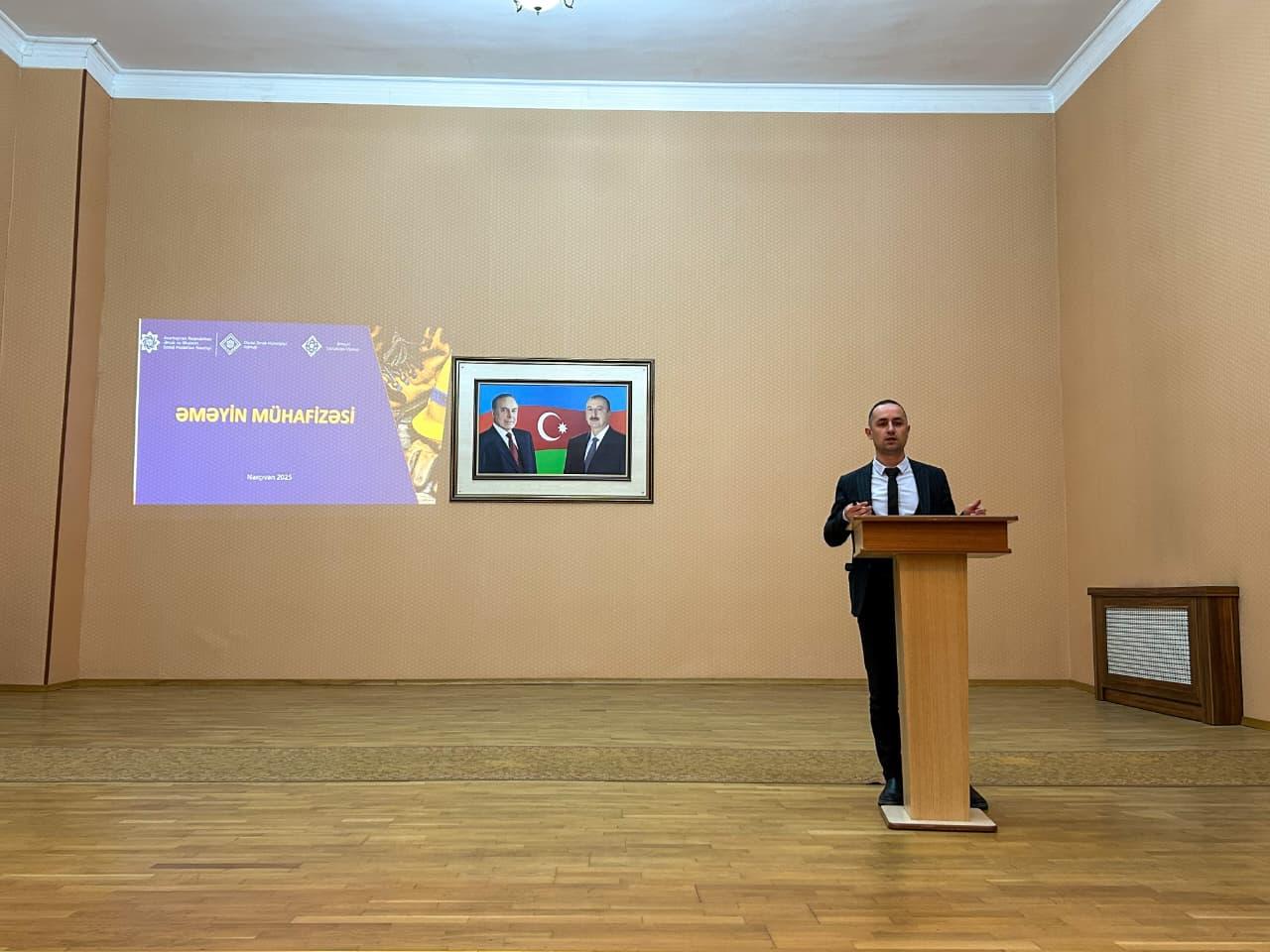Əməyin Mühafizəsi Mərkəzi və Naxçıvan Təlim Mərkəzinin birgə təşkilatçılığı ilə “İş yerlərində əməyin mühafizəsi, texniki təhlükəsizlik və iş yerlərinin attestasiyası” mövzusunda növbəti təlim keçirilib.