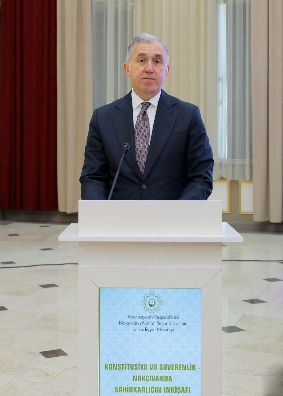Naxçıvan Muxtar Respublikasında Azərbaycan Respublikası Prezidentinin səlahiyyətli nümayəndəsi Fuad Nəcəfli tədbirdə çıxış edərək qeyd edib ki, 2025-ci ilin Azərbaycan Respublikasının Prezidenti cənab İlham Əliyev tərəfindən “Konstitusiya və Suverenlik İli” elan olunması dövlət müstəqilliyinin, siyasi sabitliyin və iqtisadi təhlükəsizliyin bir daha prioritet elan edilməsidir. Bu, eyni zamanda dövlətçilik ənənələrinin möhkəmləndirilməsi ilə yanaşı, güclü iqtisadi baza üzərində qurulan müasir Azərbaycan modelinin davamlı inkişafına da açıq mesajdır. Bu modelin əsas sütunlarından biri isə şübhəsiz ki, sahibkarlıqdır. “Naxçıvan Muxtar Respublikasının sosial-iqtisadi inkişafına dair 2023-2027-ci illər üçün Dövlət Proqramı” bu ərazilərdə iqtisadi fəallığın yüksəldilməsi, sahibkarlığın genişlənməsi və əhalinin rifahının artırılması istiqamətində mühüm yol xəritəsi olub. Dövlət proqramı çərçivəsində Naxçıvan Sənaye Parkının yaradılması, yeni nəqliyyat infrastrukturlarının formalaşdırılması, turizm, kənd təsərrüfatı və xidmət sahələrinin inkişafı istiqamətində əhəmiyyətli işlər görülməkdədir.