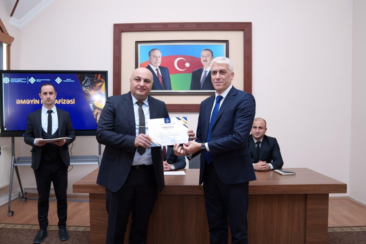 Naxçıvan Muxtar Respublikasında “Əməyin mühafizəsi və texniki təhlükəsizlik”, həmçinin “Bədbəxt hadisələrin uçotu, təhqiqi və qarşısının alınması istiqamətində görülən tədbirlər” mövzularında keçirilmiş təlimin yekununda SƏTƏM mütəxəssislərinə sertifikatlar təqdim olunub.