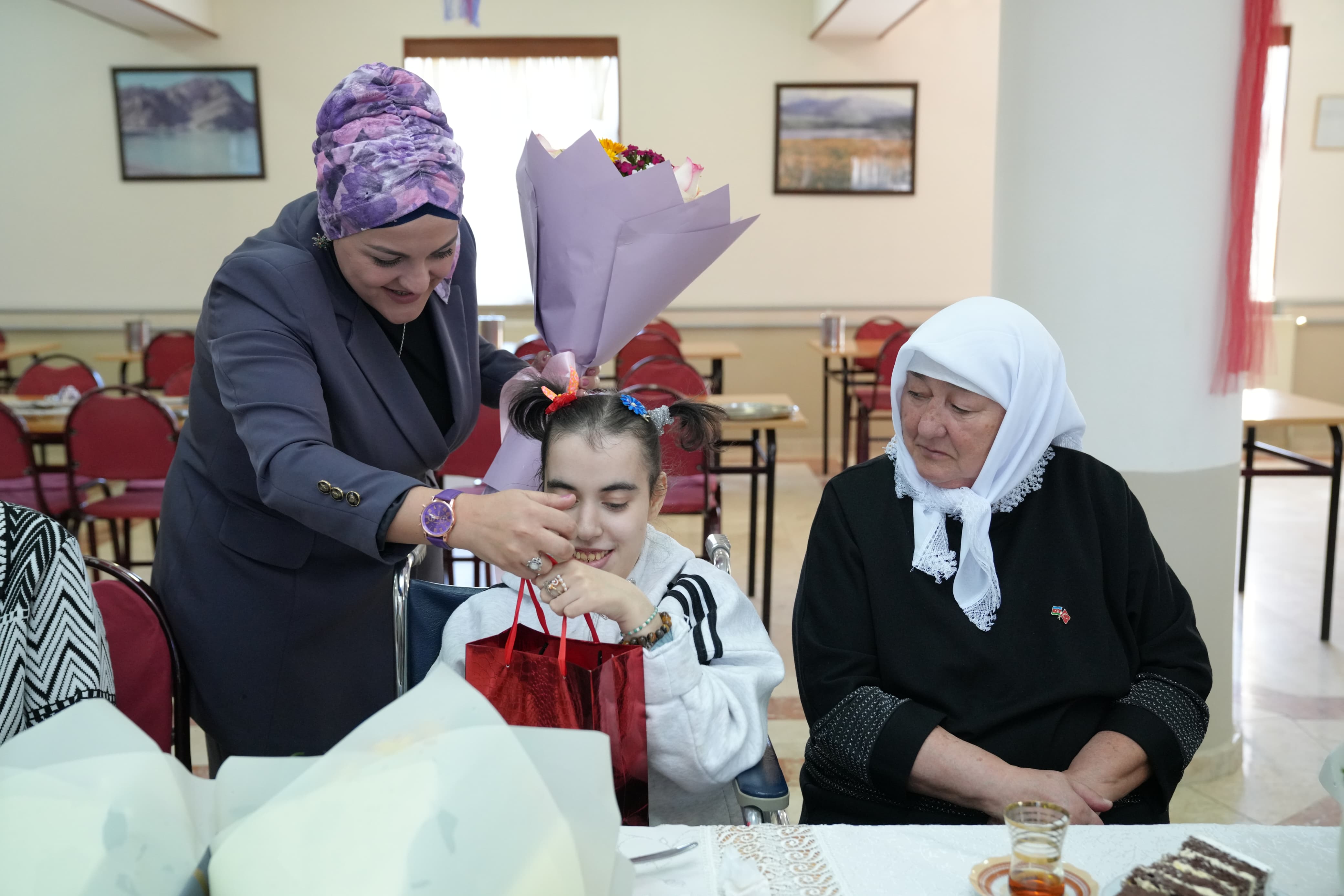 Naxçıvan Muxtar Respublikasının Əmək və Əhalinin Sosial Müdafiəsi Nazirliyinin tabeliyində Dövlət Tibbi-Sosial Ekspertiza və Reabilitasiya Agentliyinin Uşaq Bərpa Mərkəzinin əməkdaşları 8 Mart- Beynəlxalq Qadınlar Günü münasibətilə Sosial Xidmətlər Agentliyinin “Çətin həyat şəraitində olan şəxslər üçün Sosial Reabilitasiya Müəssisəsi"nin benefisiarları ilə görüşüb, təbriklərini çatdırıblar.