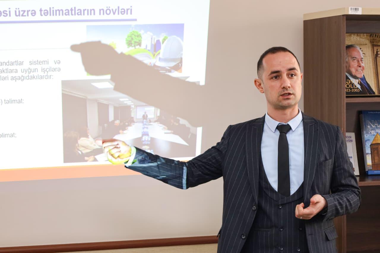 Təlim “İş yerlərində əməyin mühafizəsi, texniki təhlükəsizlik, iş yerlərinin attestasiyası və işçilərin bədbəxt hadisələrdən icbari sığortası” mövzusuna həsr edilib.