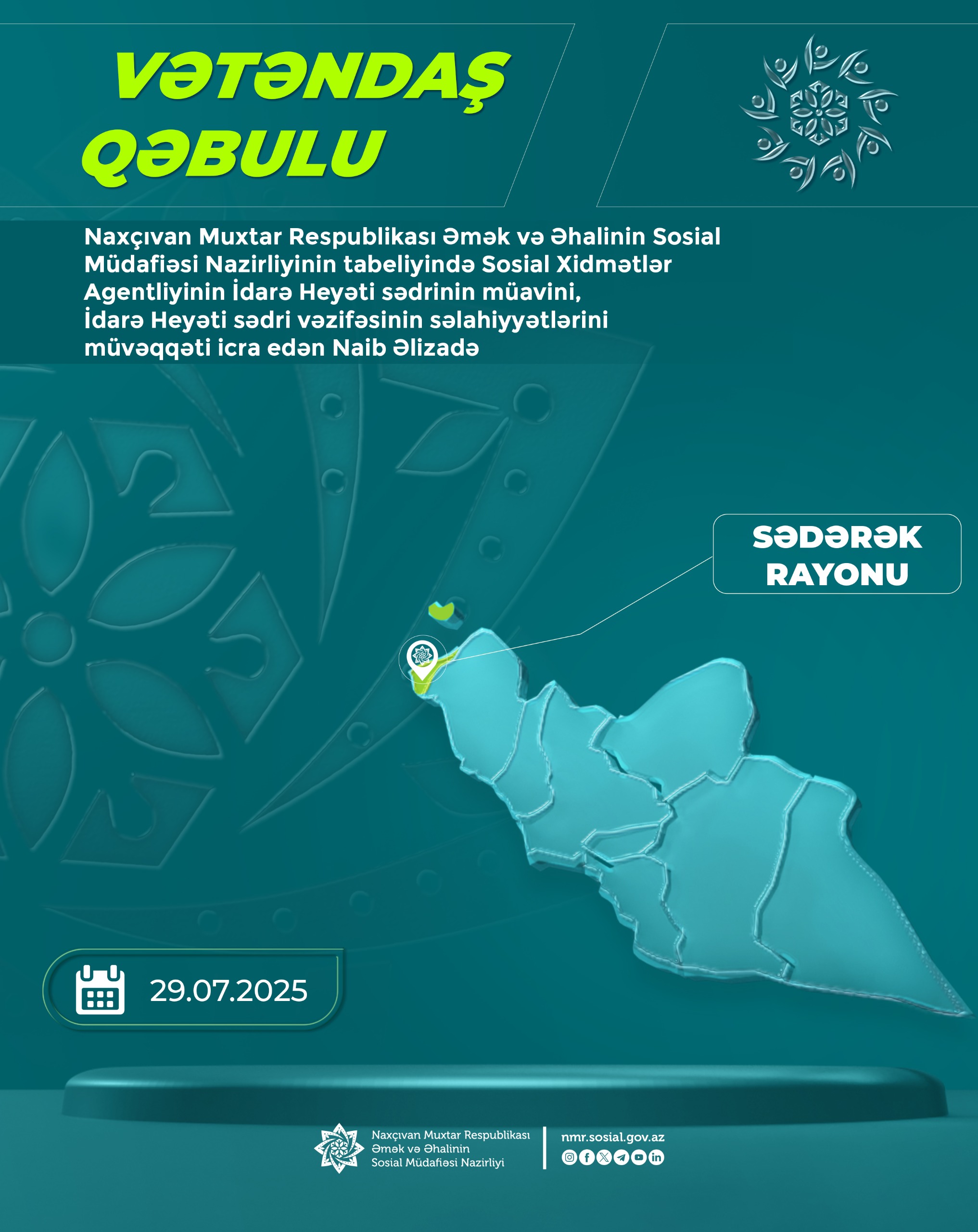 Naib Əlizadə Sədərək rayonunda vətəndaşları qəbul edəcək